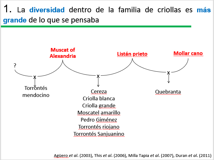 Cualquier hipótesis sobre el origen natural de las cepas criollas (nacidas en Sudamérica, cuyos padres son vides llegadas de Europa), sin intervención humana, tiene que considerar que éstas deberían haber sido principalmente autopolinizaciones. La razón: Las flores de los principales padres detectados por análisis de ADN – Listán Prieto y Moscatel de Alejandría – son hermafroditas (a diferencia de las monoicas o con un solo sexo). Pero lo que muestra el análisis genético de su descendencia, es lo contrario: hay muy pocas autopolinizaciones y la mayoría son polinizaciones cruzadas. Esto último lo podría haber hecho la naturaleza solo si alguno de los parentales fuera un macho estéril, por ejemplo, y no es el caso. La otra explicación posible es que alguien haya realizado los cruzamientos que dieron origen a esas variedades criollas, con intención. Y en ese caso, considerando que la vitivinicultura fue bajando desde Perú y Bolivia, quizás fue la necesidad de adaptarse a las nuevas condiciones de desierto, altura y salinidad lo que motivó este desarrollo. Luego, a medida que fue creciendo la expansión de la colonización, se habrían ido adaptando a las condiciones del secano y otros ambientes.
