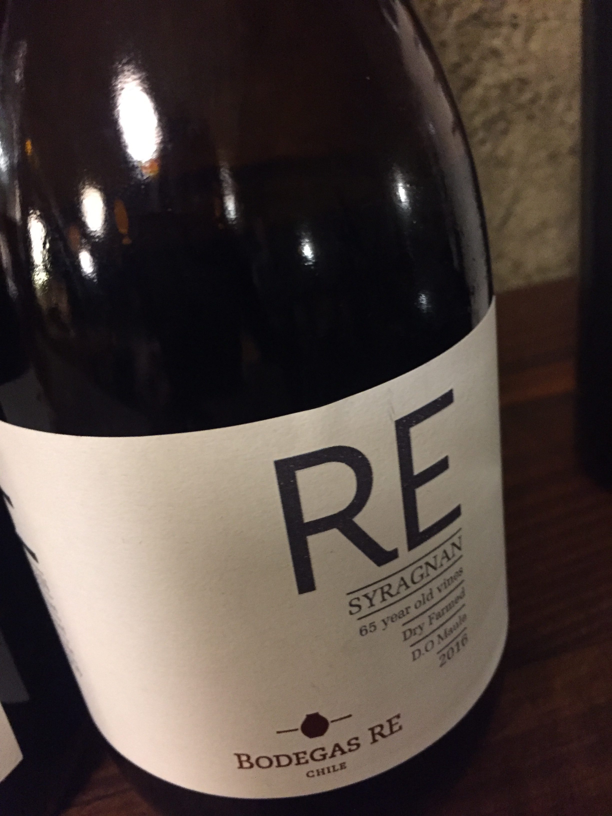 Syragnan 2016 ($13.000). ¿Ya se imaginan la mezcla? De color violeta oscuro es mezcla de Syrah y Carignan. “Es un vino que me encanta” dice Pablo Jr. Pero a mi me parece un vino histérico, demasiado nervioso, sin control, me hace fruncir todo el seño, y se lo digo. Jr. se ríe. Lo explico: este tinto no ha tenido nada de maloláctica, una segunda fermentación que busca suavizar los taninos de todos los vinos tintos, es, podemos decir, un proceso que se hace si o sí a los vinos tintos. Pero a éste, no. Y por eso tiene ese nervio del tanino y de la acidez juntos, que más que inquieto, hace que el vino no quiera acomodarse de manera alguna en la boca. Probamos una versión más vieja, 2013, más suavizada por la guarda en botella. El romance en la botella, sí, le ha hecho bien; es algo más cremoso en boca, pero su tanino es aún firme. Por supuesto su fruta en nariz esta algo más oxidada, y con notas de tomate verde. No creo que se vaya a suavizar con más guarda.