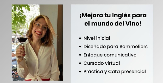 Dictado por Vanesa Heredia, consta de una dinámica mixta que combina 4 clases virtuales sincrónicas (1.45hs cada una + pausa 15 min) y 2 clases presenciales de práctica y cata (2.5 hs cada una). Heredia es profesora universitaria de lengua y cultura inglesa y diplomada en Inglés para el sector vitivinícola.