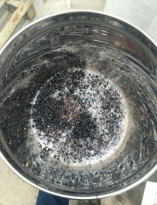 «Hay mucha uva, ya tenemos un kilo o dos racimos por planta de 200 gramos», nos dice Arribillaga contento. Además, las uvas están muy sanas. Al fin, comenta, les siento notas a frutillas, antes la verdad, no les sentía aroma a nada de lo que decían los críticos… El volumen de cada variedad aún es reducido, explica, pero ya hay volúmenes más interesantes. Desde 30 litros en las variedades que más uva hay hasta 9 litros».