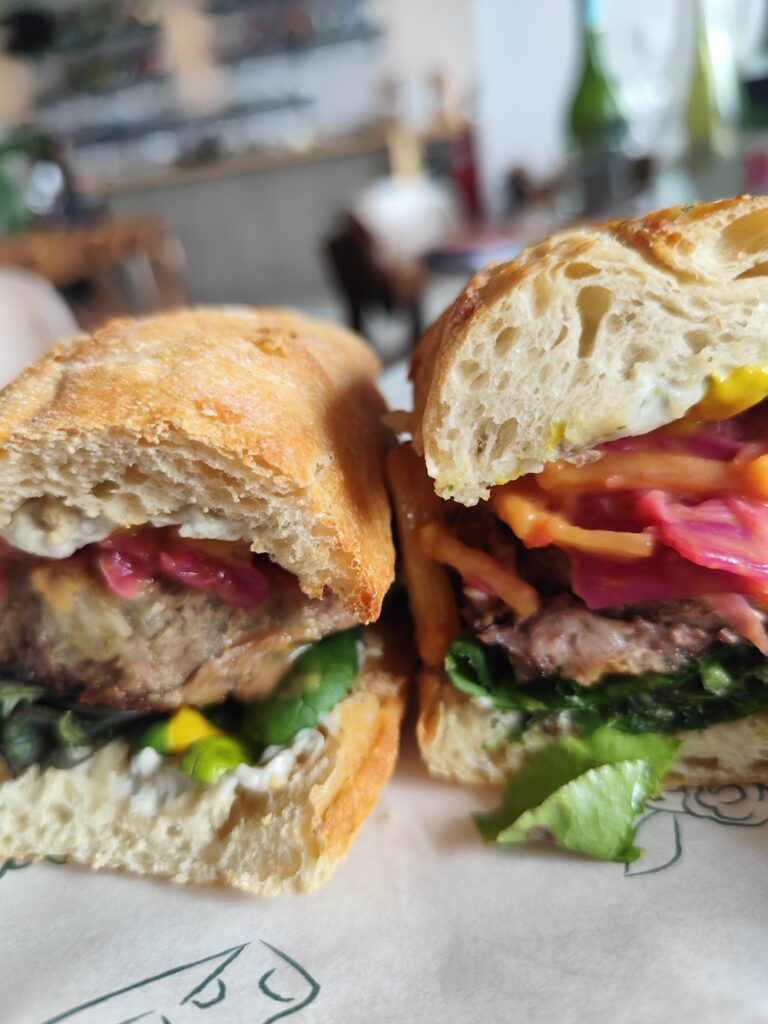 Si el hambre arrecia, recomendaría ir directo a los sánguches y platillos porque hay tanta técnica y buen producto que es aquí donde Instinto juega en otras lides, las de restaurante, aunque sin perder la enjundia. Por eso no es lujo pedir el Porko Rosso. Es un bautizo gastronómico que llega en forma de pan hogaza (fabricación de Del Barrio, obviamente) relleno de chanchito jugoso con aderezo de mostaza, encurtidos, coleslaw y hojas frescas. Contra todo pronóstico, el resultado es liviano y fresco. Otro plato para chuparse los dedos es el Estofado Franchute con sus fritas donde el clásico boeuf bourguignon se cocina en Carmenere con su chalota, panceta y champiñones. Otro nivel.