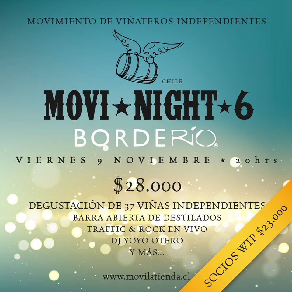 MOVI NIGHT es para todo público y los asistentes tienen derecho a degustación de los vinos MOVI, junto con disfrutar de una imperdible barra de cerveza y destilados. Al mismo tiempo, MOVI invita a degustar las diversas propuestas gastronómicas al más estilo fingerfood de 6 restaurants de Borde Río ( éste último sólo venta)