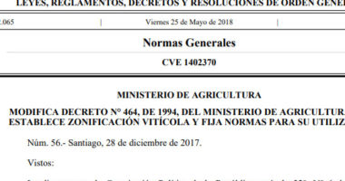 Diario Oficial publicó este viernes 25 de mayo cuatro nuevas Denominaciones de Origen para Chile, 3 de ellas establecidas por la existencia de localidades con el mismo nombre. Esta nueva modificación al Decreto 464 también suma Alicante Bouschet y Romano a listado de cepas nobles. Ya es oficial, según publicación hoy en Diario Oficial de la República de Chile (25 de mayo 2018), la modificación al Decreto 464 del año 1994, suma cuatro nuevas Denominaciones de Origen al mapa Vitivinícola de Chile. De ellas, tres establecen una nueva manera de delimitar las fronteras de las D.O. chilenas, imposibles como argumento legal hasta ahora. Ellas son Lo Abarca, en el Valle de San Antonio, junto a Apalta y Los Lingues en el Valle de Colchagua. La cuarta nueva denominación, Licantén, sigue los lineamientos anteriores, al ser definida como tal ya que es una comuna del Valle de Curicó. Estas nuevas denominaciones fueron … Sigue leyendo 2 NUEVAS CEPAS + 4 D.O. PARA CHILE