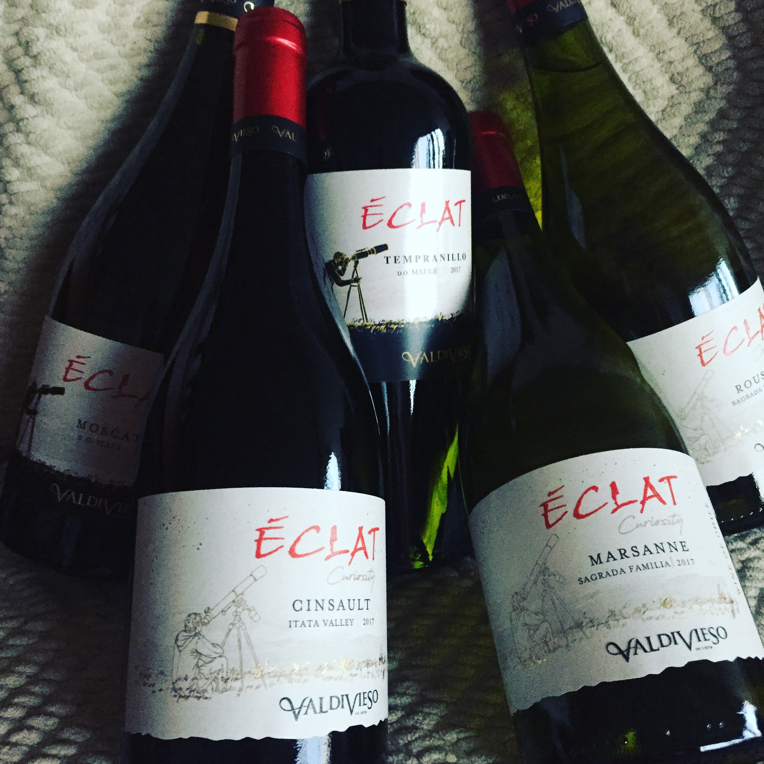 En la misma línea que muestra vinos fuera del esquema de cepas francesas tradicionales vinificadas de forma tradicional, pero con una imagen mucho más conservadora, llamaron la atención los nuevos Eclat de Valdivieso, con Moscatel, Marssane, Roussanne, Cinsault (todos 100% acero) y Tempranillo (guardado en barricas usadas).