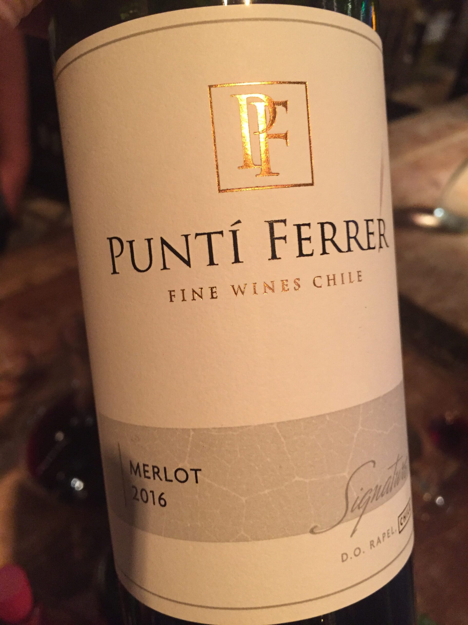 El mejor precio calidad de la noche fue el Merlot Puntí Ferrer 2016, del valle de Rapel. Un vino jugoso, lleno de fruta negra, rica, muy peligrosamente fácil de beber. A propósito de Puntí Ferrer y sus nuevos vinos, ahora de la mano de enólogo argentino, no dejen de probar su espumante de País, bueno bueno.