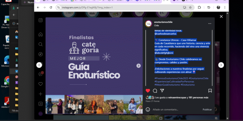 Para celebrar su tremenda labor, Enoturismo Chile presentó con a los finalistas de la categoría Mejor Guía Enoturismo 2025. Ellos son: